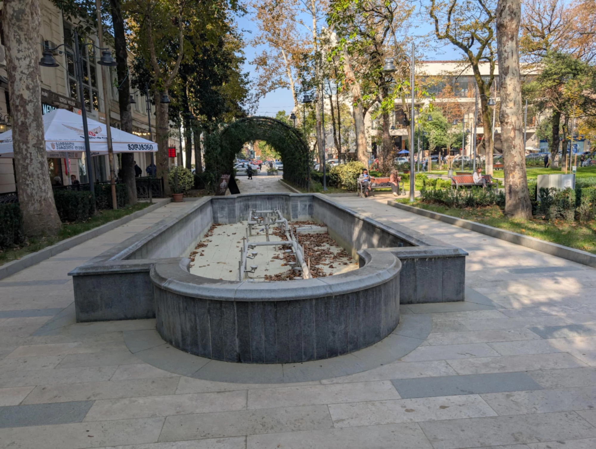 ქალაქის ბულვარი, რომელიც ტურისტების მთავარი თავშეყრის ადგილია ფოტოებს გამორთულ და დაბინძურებულ შადრევნებთან იღებენ.