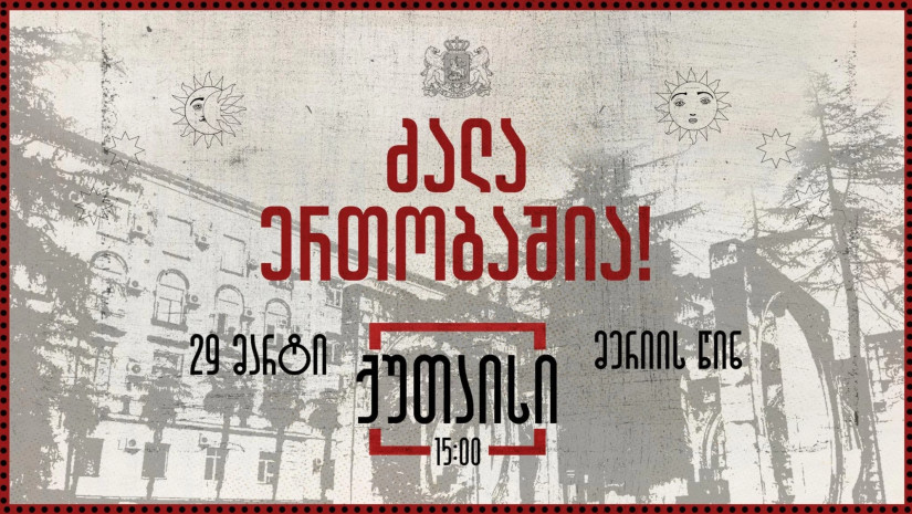 ქუთაისში, მერიის წინ 29 მარტს, 15:00 საათზე, აქცია სლოგანით "ძალა ერთობაშია" გაიმართება.