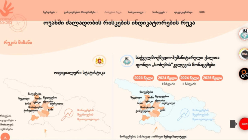 2023 წლიდან პლატფორმაზე დაემატა „ოჯახში ძალადობის რისკების ინდიკატორების რუკა“, რომელიც 11 მუნიციპალიტეტში - იმერეთი, სამეგრელო, გურია, აჭარა - ძალადობის რისკის შეფასებას ახორციელებს. რუკა საშუალებას გვაძლევს გამოვავლინოთ რისკის მქონე რეგიონები, მონაცემები შევადაროთ დროისა და სივრცის მიხედვით და საჭირო ღონისძიებები დროულად გავატაროთ.